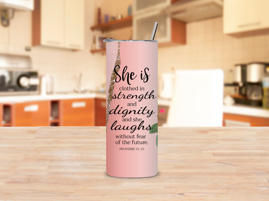 She is clothed in strength Tumbler Cups