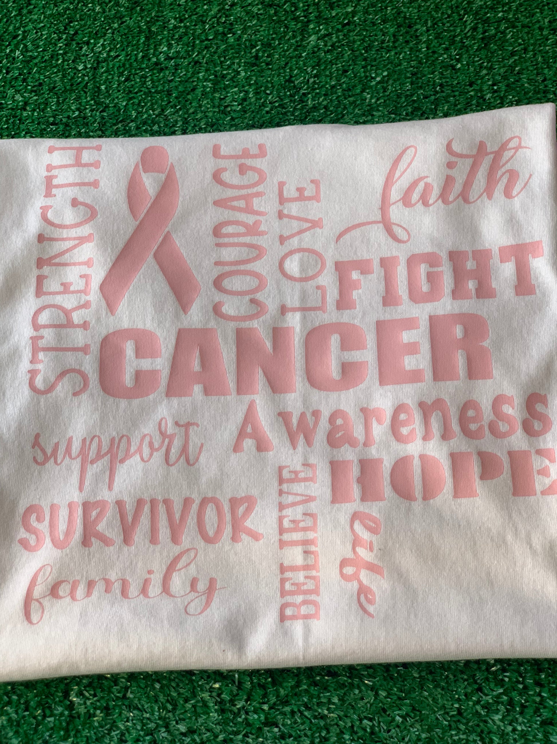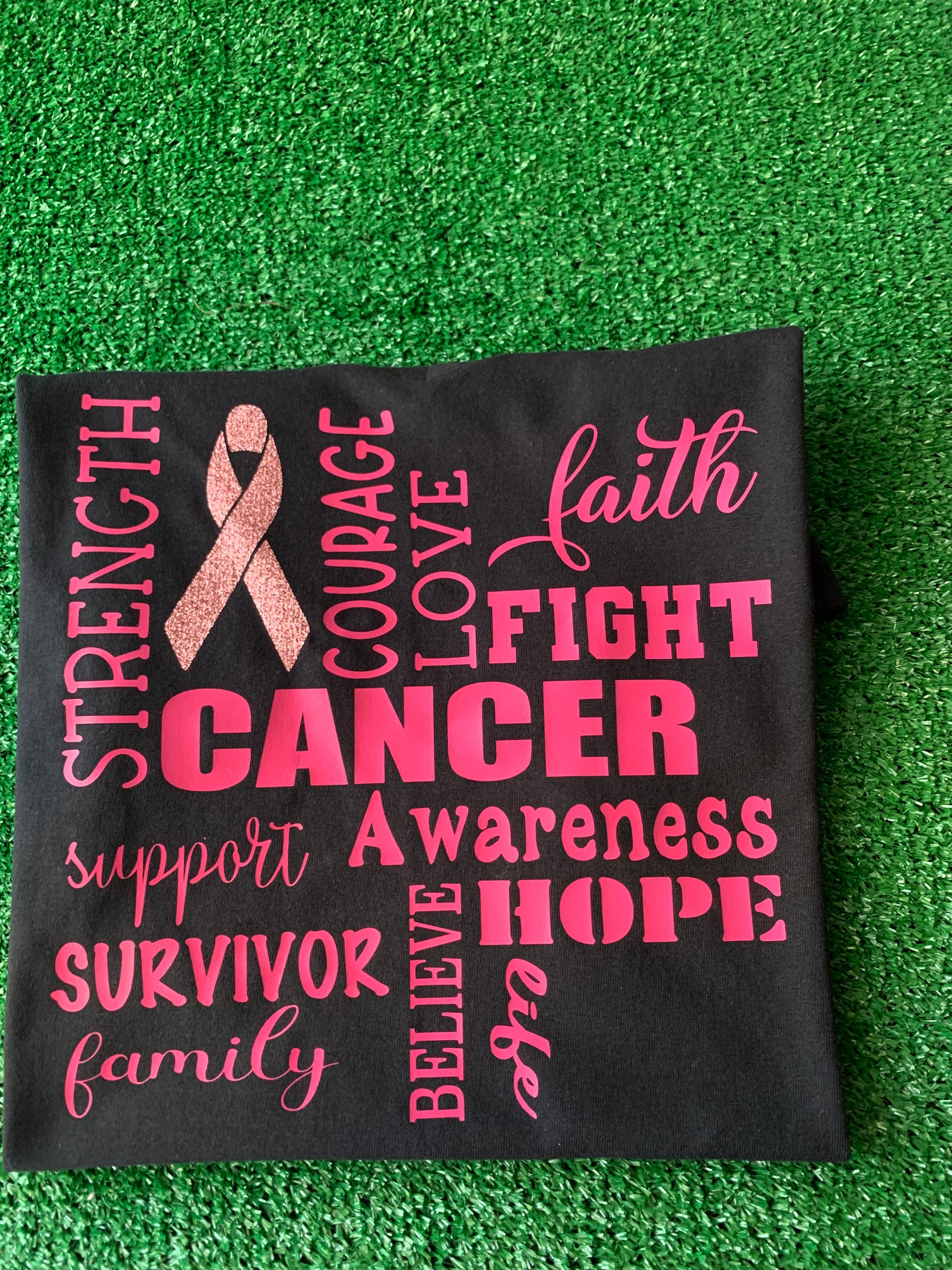 Cancer awareness should never be limited to just one month. We offer this Cancer Awareness T-shirt year round because the fight is year round. We celebrate our survivors and encourage those still fighting! This V neck T-shirt is available in black and white.