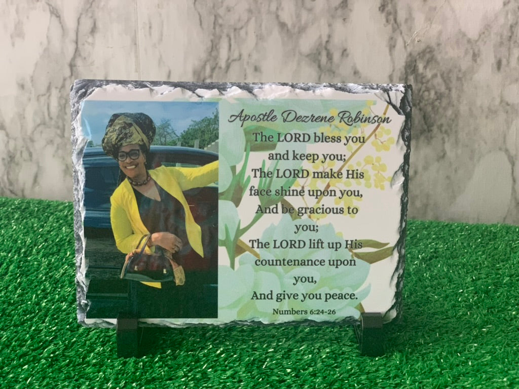 Capture your treasured moments with this beautiful Slate Rock Photo Plaque! Crafted with the natural beauty of chiseled slate, this unique gift showcases your favorite photo with eye-catching style. Every plaque is made with dye sublimation and made to order with love.